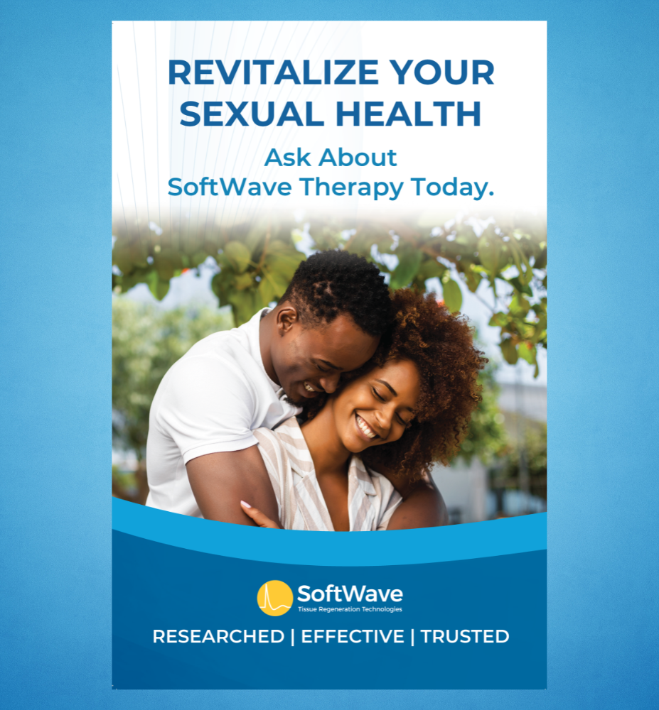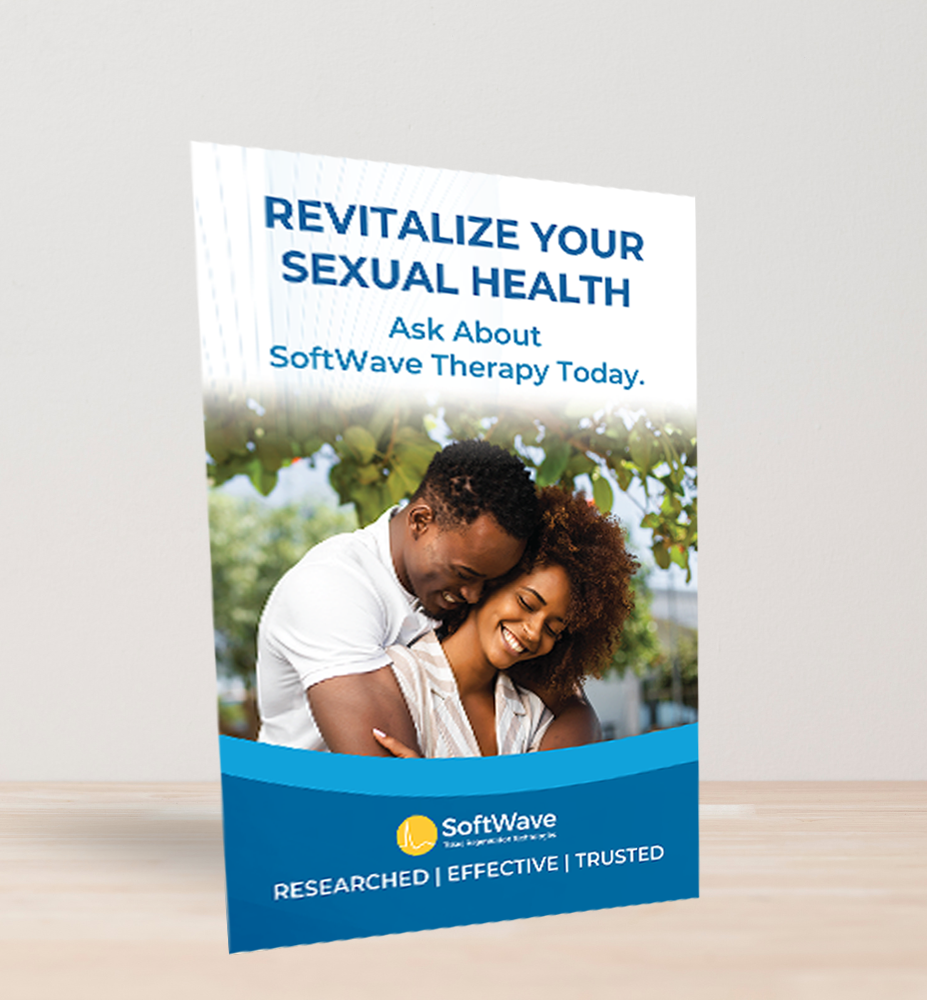 Catch the eye of your patients with our 11 x 17 poster, printed on premium 16pt coated cover stock and mounted to a collapsible stand for easy display on countertops. This one-sided poster features a sophisticated design showcasing the innovative SoftWave medical device. It's an ideal choice for medical offices looking to promote their new SoftWave device treatments. This poster is not just a marketing tool, but a visual statement of your commitment to cutting-edge healthcare. Encourage your patients to inquire about SoftWave treatments and demonstrate your practice's dedication to advanced medical technology with this elegant and informative wall display.