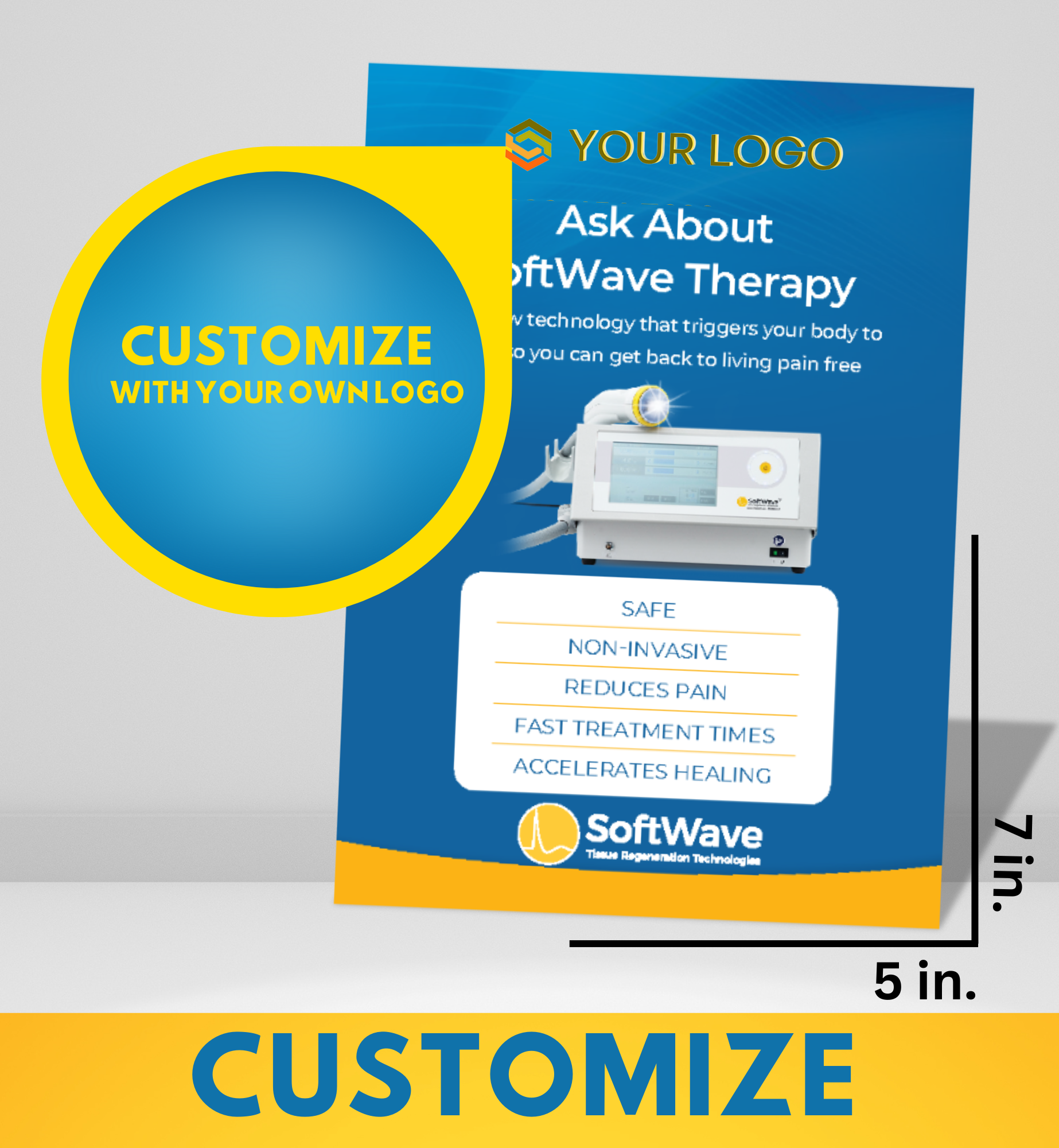 Capture attention and drive patient engagement with our premium 5x7 postcards. Printed on high-quality 100# gloss cover stock, these eye-catching cards feature a professionally designed layout showcasing the innovative SoftWave device. These postcards feature a space dedicated for your own logo.