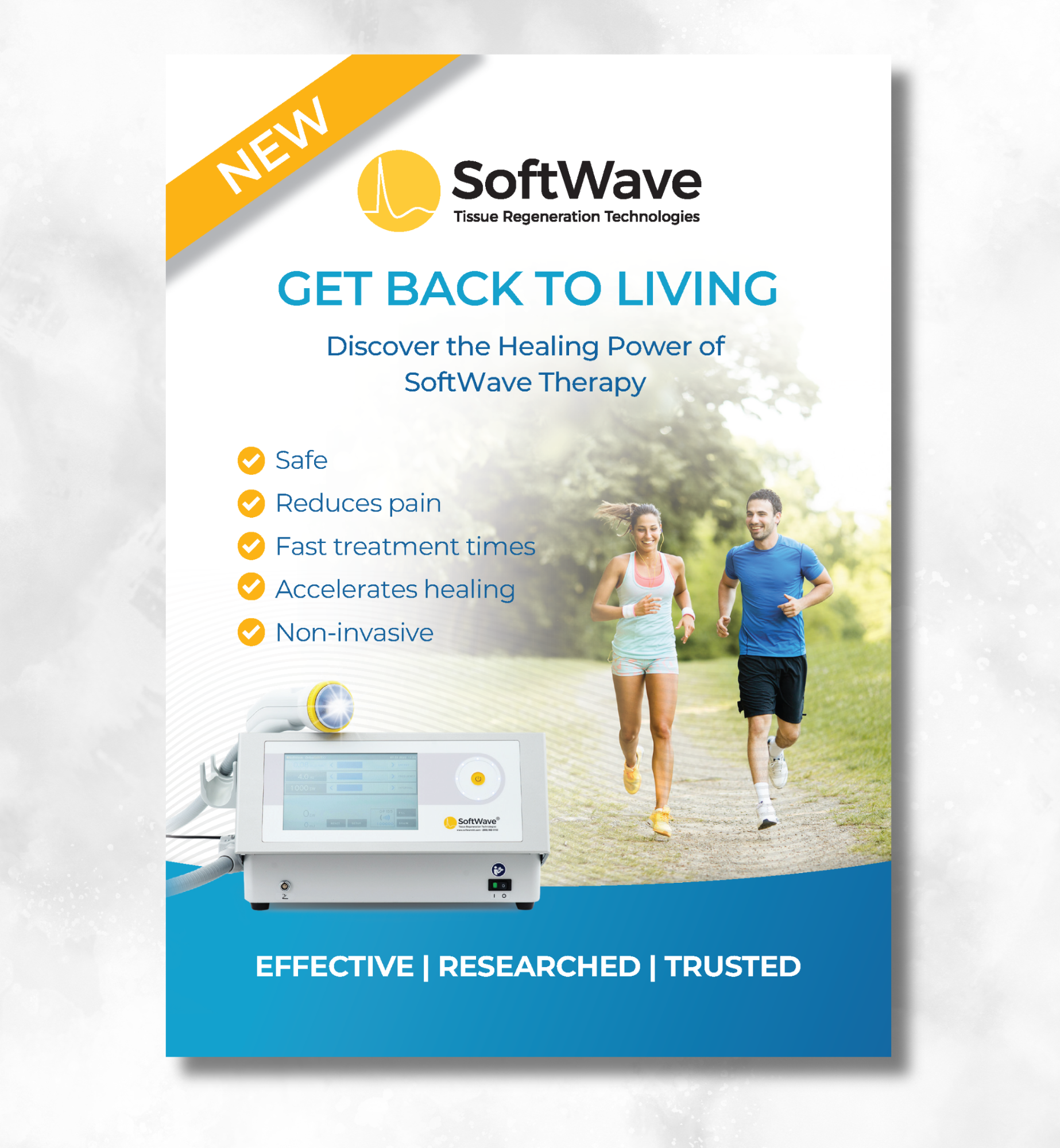 Capture attention and drive patient engagement with our premium 5x7 postcards. Printed on high-quality 100# gloss cover stock, these eye-catching cards feature a professionally designed layout showcasing the innovative SoftWave device.