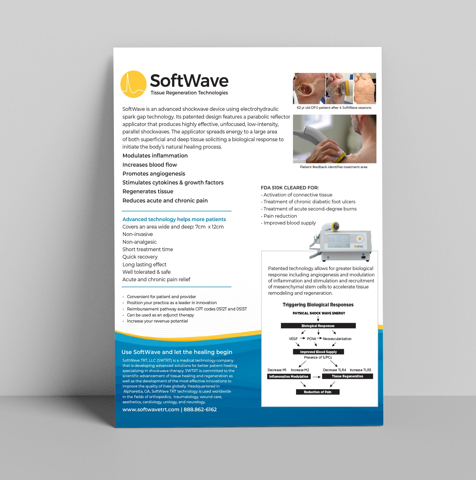 Introduce your patients to the world of advanced treatment with our professionally designed flyer for the SoftWave medical device. This single-sided flyer is perfect for detailing the benefits and features of SoftWave treatment in an easily accessible format. Thoughtfully crafted, it provides a comprehensive overview of the treatment process and patient benefits, ensuring your audience is well-informed.