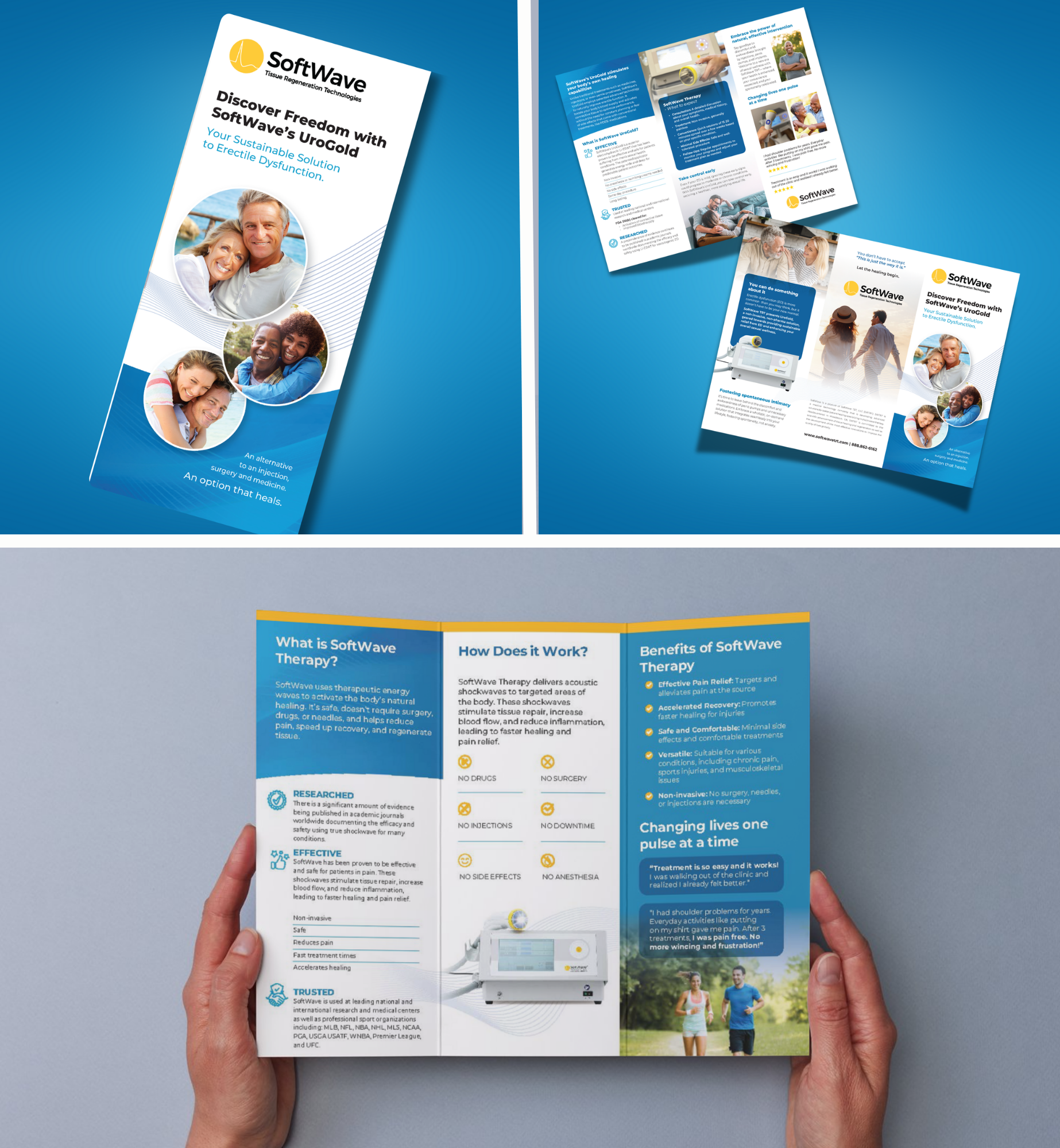- 100 Tri-fold Brochures: Brochures are one of the most requested patient information tools. Printed on 100# gloss text, this brochure provides detailed information on Softwave's Urogold technology.
