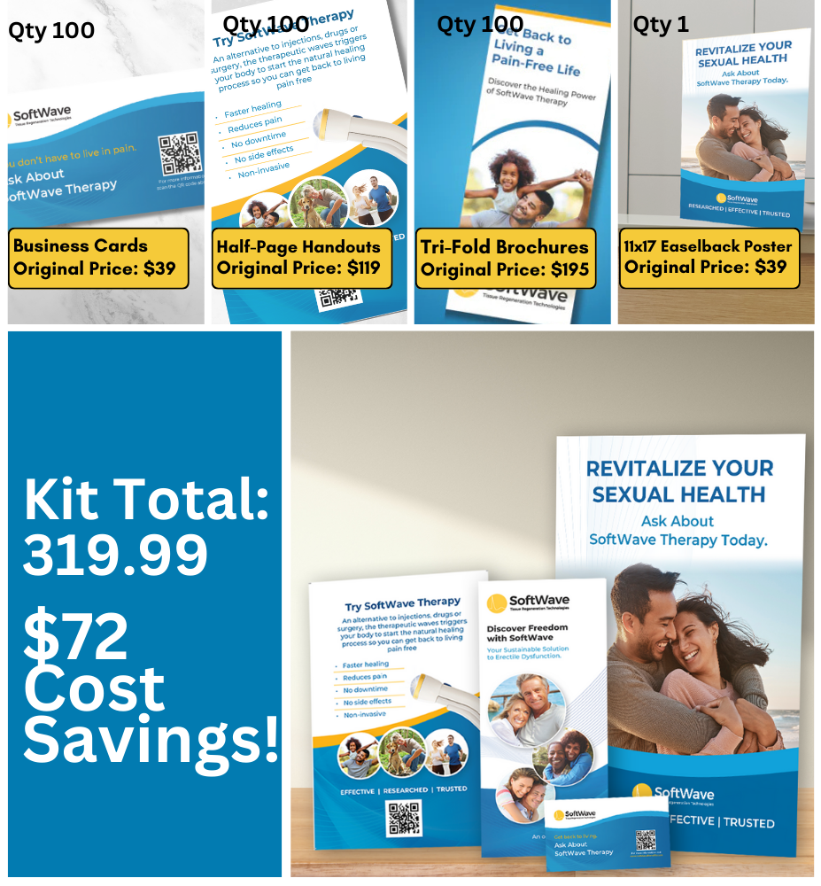 - 11"x17" Poster with Easel-back: Printed on premium, 16pt cardstock. This beautiful poster is designed to capture attention and advertise the purpose and effectiveness of Softwave for men's health.
