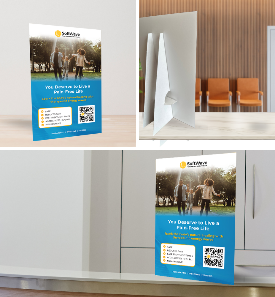 - 11"x17" Poster with Easel-back: Printed on premium, 16pt cardstock, this poster can be set out to inform patients of the benefits of Softwave.